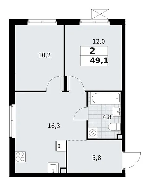 Количество комнат: 2, 49.1 кв.м.