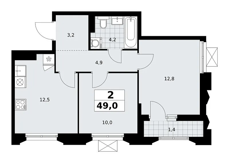 Площадь (общ/жил/кух), м2: 49.1/—/12.6