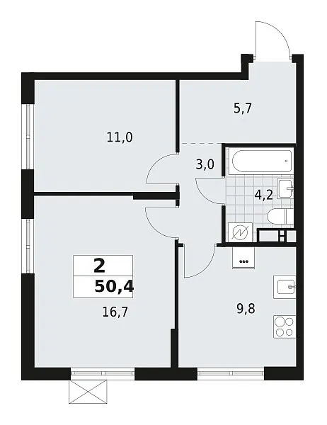 Площадь (общ/жил/кух), м2: 42.1/—/16.8
