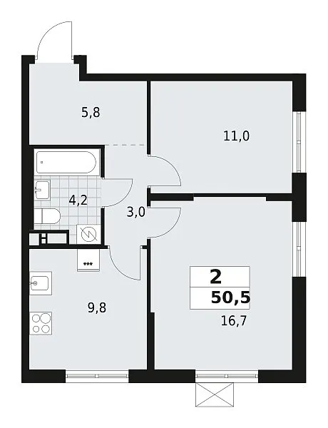 Площадь (общ/жил/кух), м2: 50.8/—/9.7