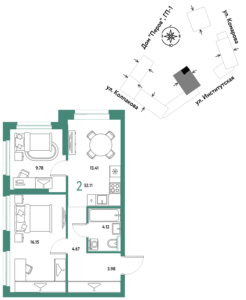 Площадь (общ/жил/кух), м2: 53.81/34.16/5.15