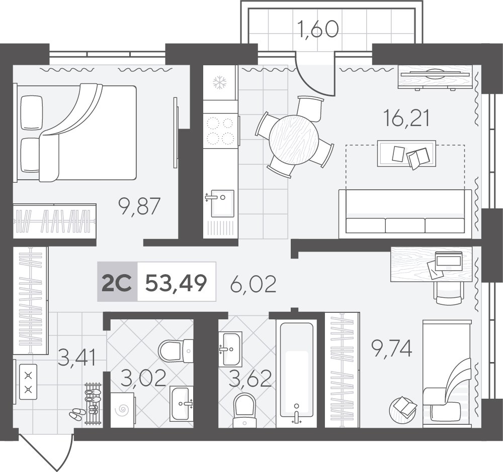 Площадь (общ/жил/кух), м2: 53.61/21.72/14.83