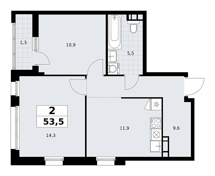 Площадь (общ/жил/кух), м2: 53.5/—/11.9