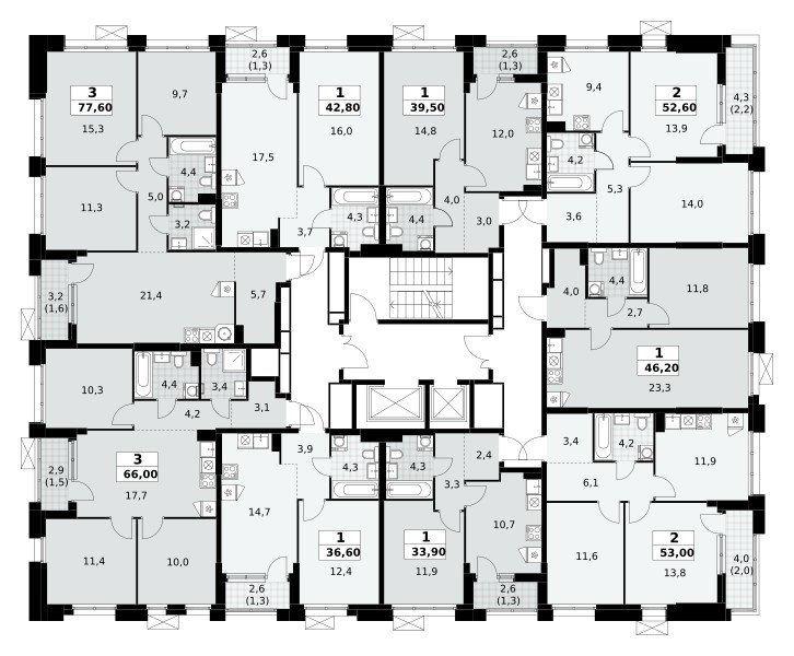 Площадь (общ/жил/кух), м2: 54.3/—/15