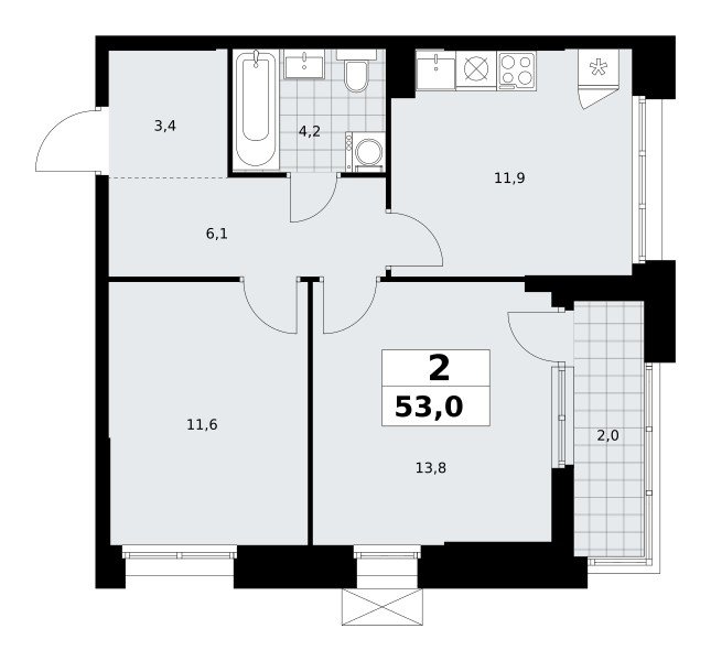Купить новую двухкомнатную квартиру 53 м² на 3/19 этаже в ЖК «Прокшино», г. Тюмень за 19673070 ₽ | Агентство недвижимости «Вплюсе.Топ» — Агентство недвижимости "Вплюсе.Топ"