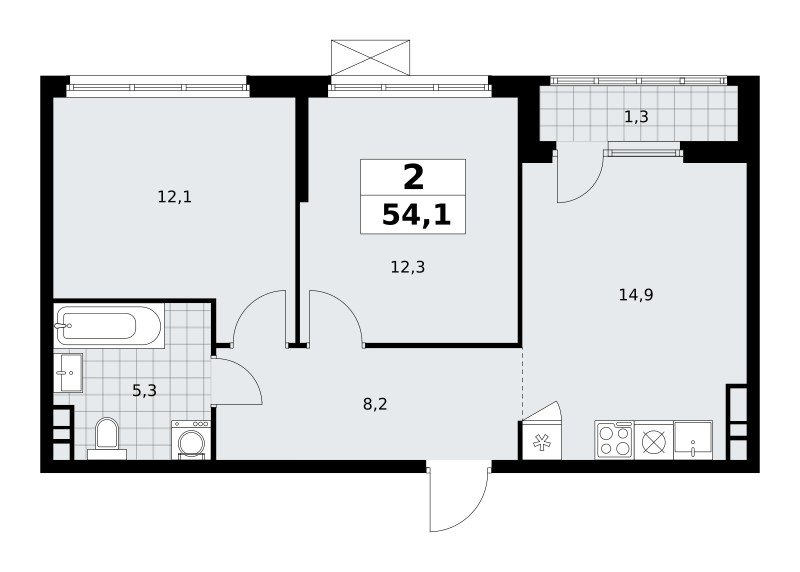 Площадь (общ/жил/кух), м2: 54.1/—/14.9