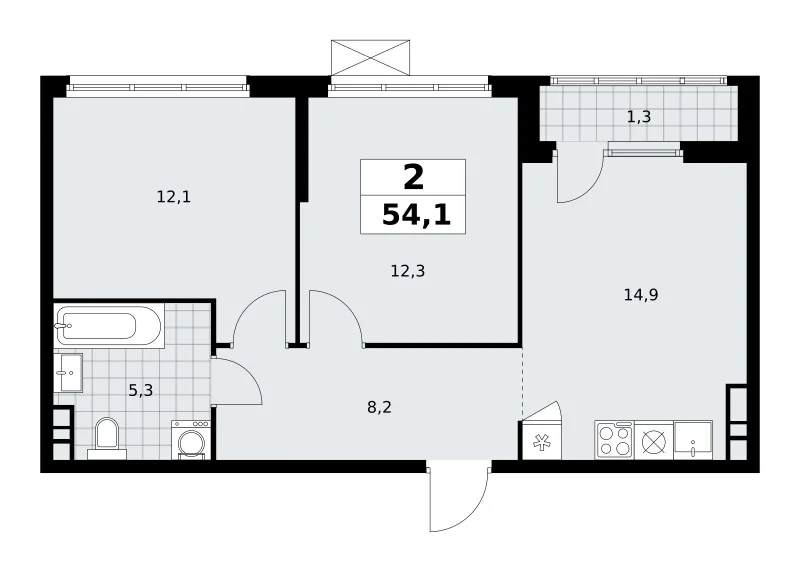 Площадь (общ/жил/кух), м2: 54.1/—/14.9
