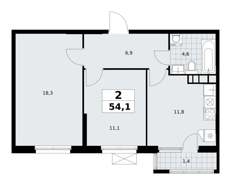 Площадь (общ/жил/кух), м2: 54.1/—/11.8