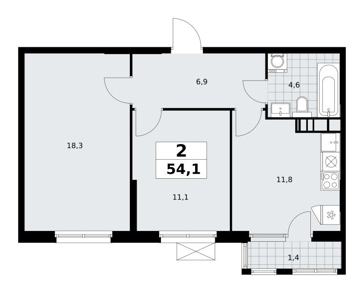 Площадь (общ/жил/кух), м2: 54.1/—/11.8