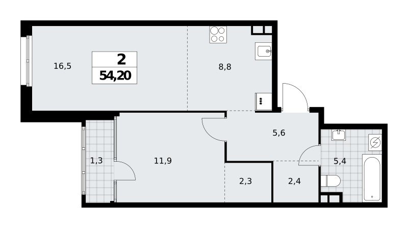 Площадь (общ/жил/кух), м2: 54.2/—/8.8