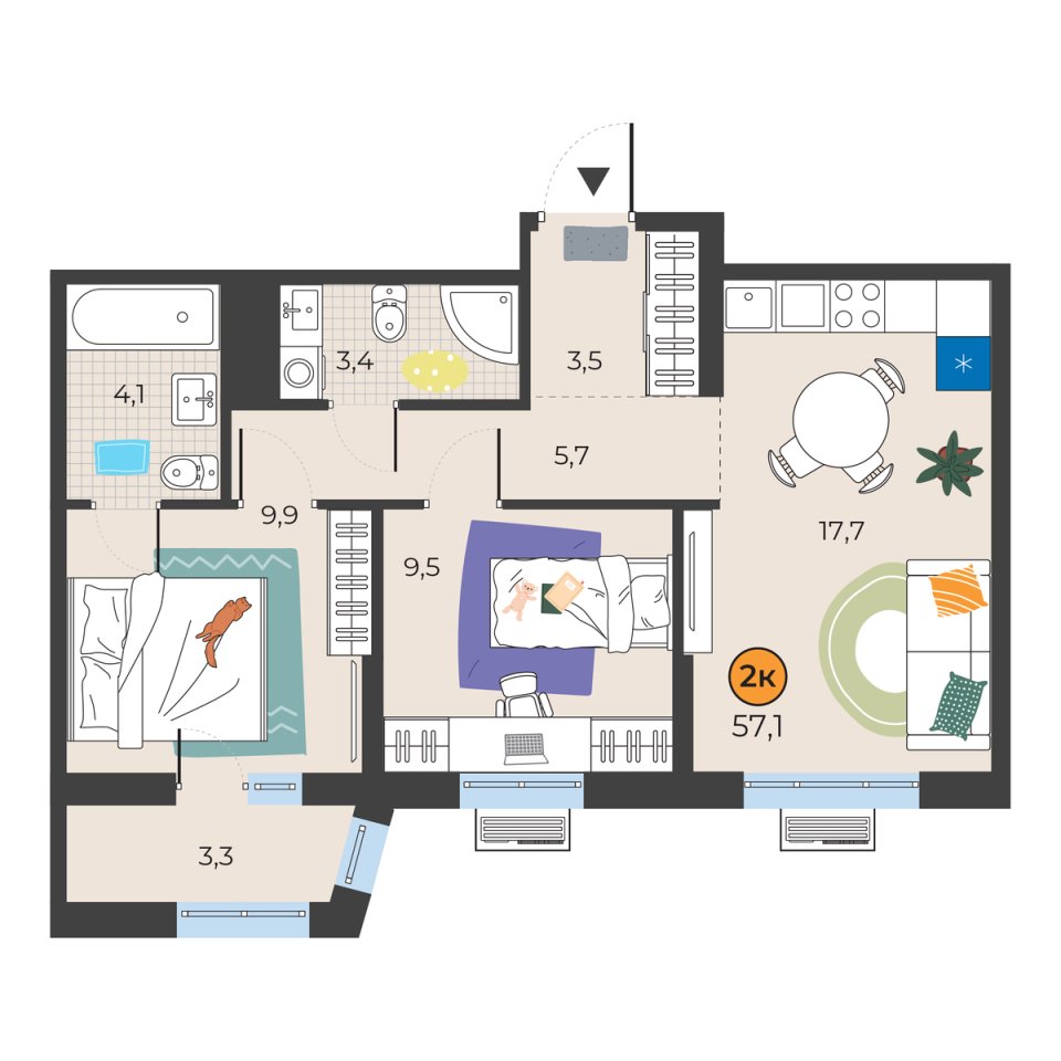 Купить новую двухкомнатную квартиру 54.8 м² на 19/25 этаже в ЖК «Корней», г. Тюмень за 9510000 ₽ | Агентство недвижимости «Вплюсе.Топ» — Агентство недвижимости "Вплюсе.Топ"
