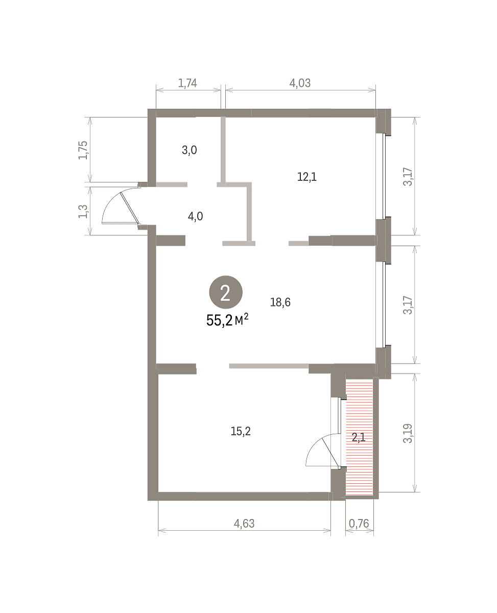 Площадь (общ/жил/кух), м2: 55.75/24.76/18.51