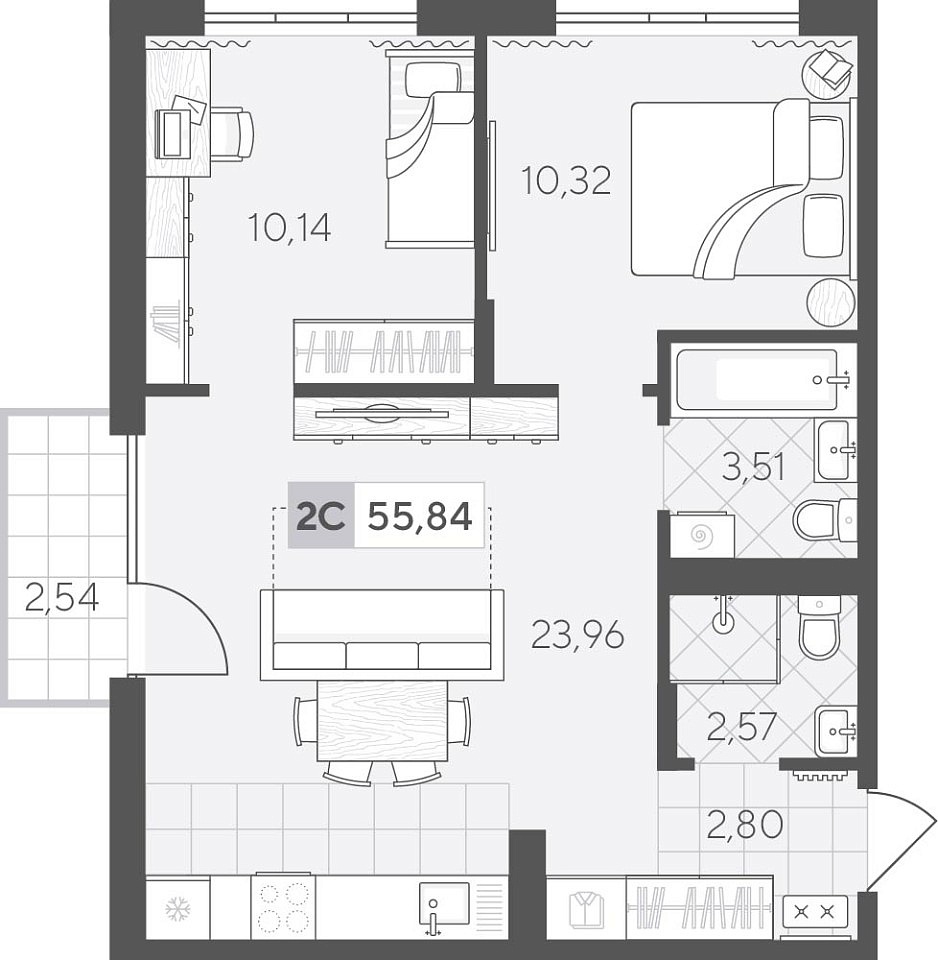 Купить новую двухкомнатную квартиру 55.84 м² на 4/4 этаже в ЖК «Скандиа. Квартал у Озера», г. Тюмень за 7210000 ₽ | Агентство недвижимости «Вплюсе.Топ» — Недвижимость России