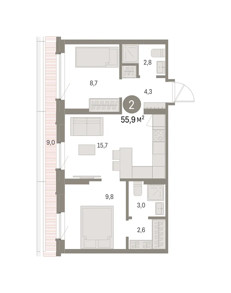 Купить новую двухкомнатную квартиру 55.88 м² на 8/9 этаже в ЖК «Брусника в Академическом», г. Тюмень за 9240000 ₽ | Агентство недвижимости «Вплюсе.Топ» — Недвижимость России