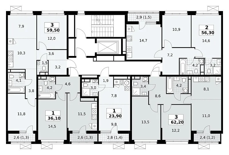 Площадь (общ/жил/кух), м2: 59.5/—/10.3
