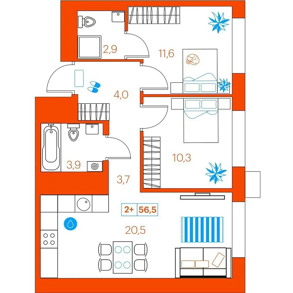 Купить новую двухкомнатную квартиру 56.5 м² на 9/22 этаже в ЖК «SuperSky», г. Тюмень за 8023200 ₽ | Агентство недвижимости «Вплюсе.Топ» — Недвижимость России
