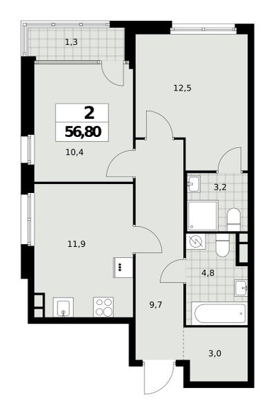 Купить новую двухкомнатную квартиру 56.8 м² на 5/16 этаже в ЖК «Дом на Зорге», г. Тюмень за 33766560 ₽ | Агентство недвижимости «Вплюсе.Топ» — Агентство недвижимости "Вплюсе.Топ"
