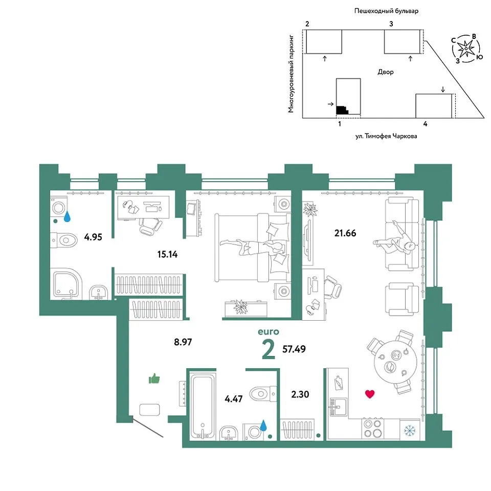 Купить новую двухкомнатную квартиру 57.49 м² на 10/31 этаже в ЖК «Звёздный», г. Тюмень за 9576087 ₽ | Агентство недвижимости «Вплюсе.Топ» — Недвижимость России
