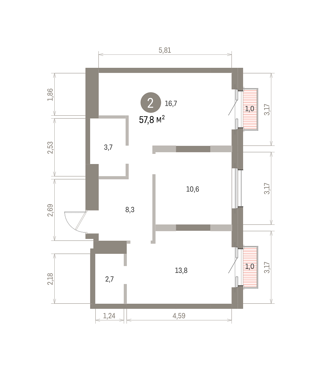 Площадь (общ/жил/кух), м2: 56.8/24.4/16.7