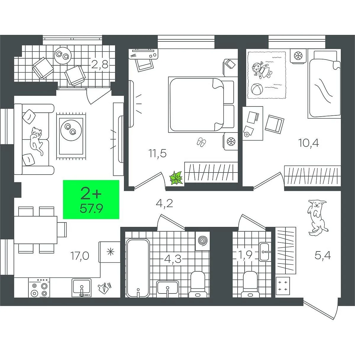 Купить новую двухкомнатную квартиру 57.91 м² на 16/19 этаже в ЖК «Гранд Квартал», г. Тюмень за 9030000 ₽ | Агентство недвижимости «Вплюсе.Топ» — Недвижимость России