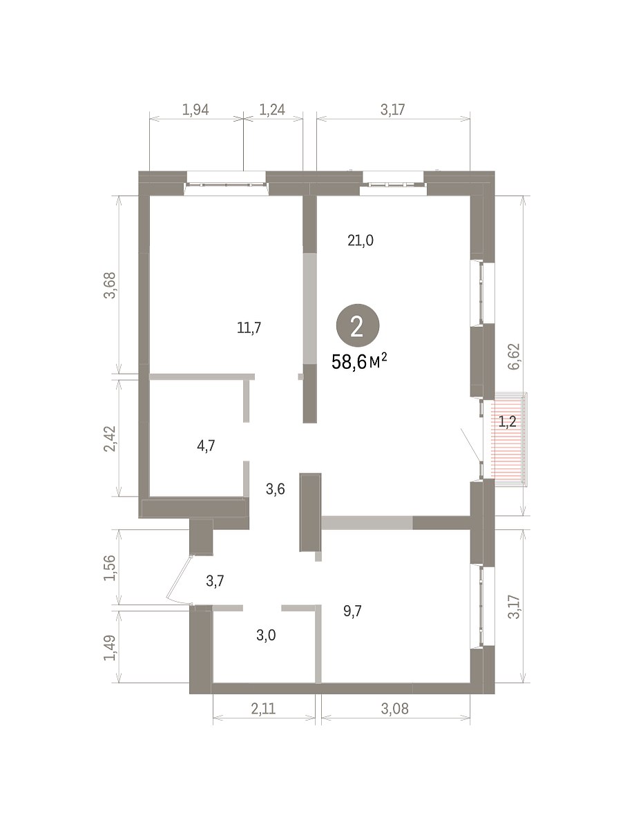 Площадь (общ/жил/кух), м2: 59.1/—/16.9