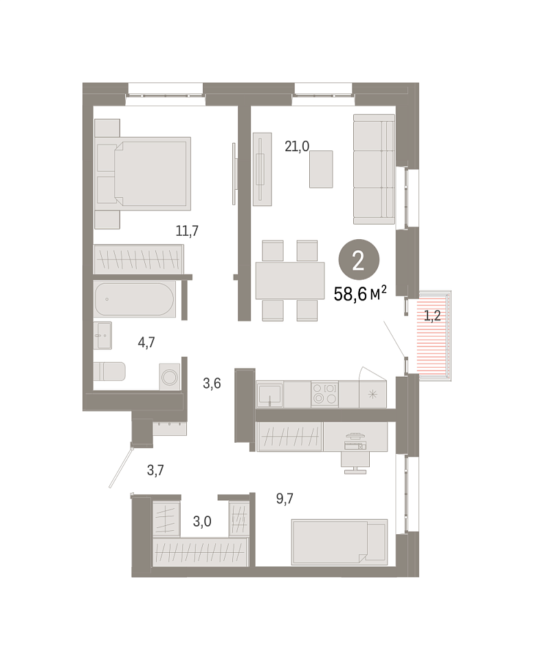 Купить новую двухкомнатную квартиру 58.6 м² на 14/16 этаже в ЖК «Квартал «Метроном»», г. Тюмень за 24770000 ₽ | Агентство недвижимости «Вплюсе.Топ» — Недвижимость России