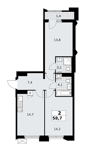 Количество комнат: 2, 58.7 кв.м.