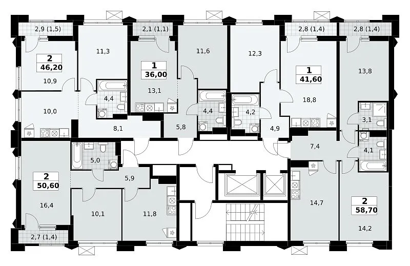 Общая площадь 58.7 м2