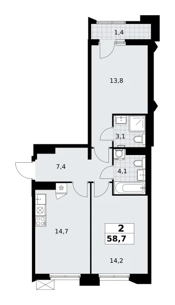 Площадь (общ/жил/кух), м2: 59.5/—/14.9