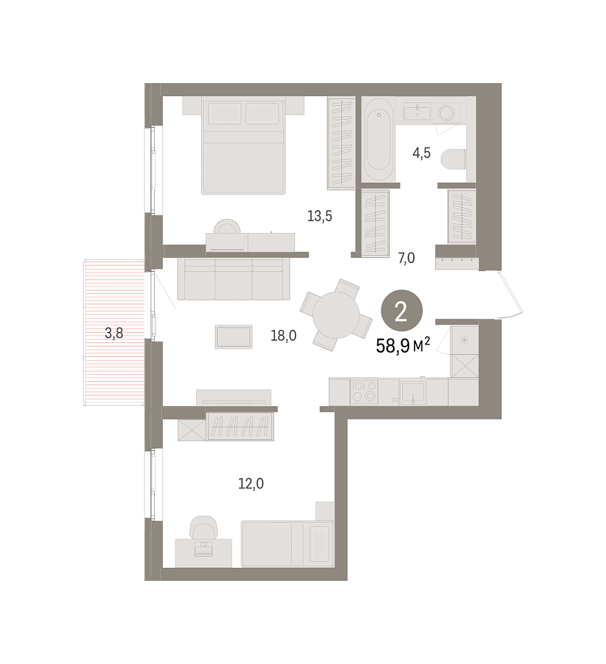 Купить новую двухкомнатную квартиру 58.85 м² на 6/8 этаже в ЖК «Брусника в Новоселье», г. Тюмень за 9460000 ₽ | Агентство недвижимости «Вплюсе.Топ» — Недвижимость России