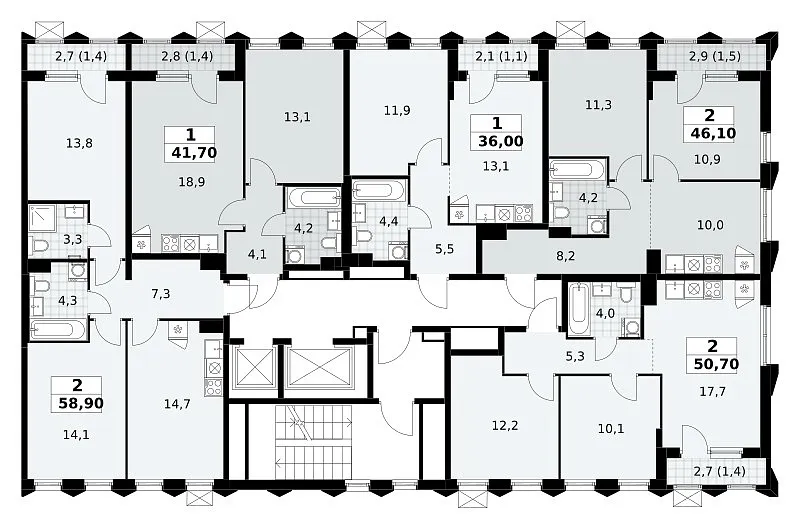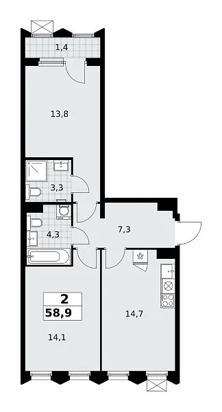 Количество комнат: 2, 58.9 кв.м.