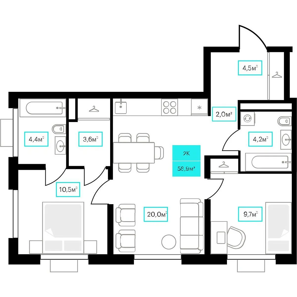 Купить новую двухкомнатную квартиру 58.9 м² на 9/23 этаже в ЖК «Futuro», г. Тюмень за 8660000 ₽ | Агентство недвижимости «Вплюсе.Топ» — Недвижимость России