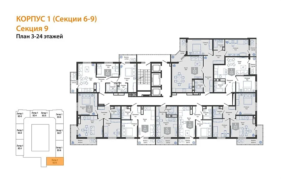 Площадь (общ/жил/кух), м2: 23.8/—/2.9