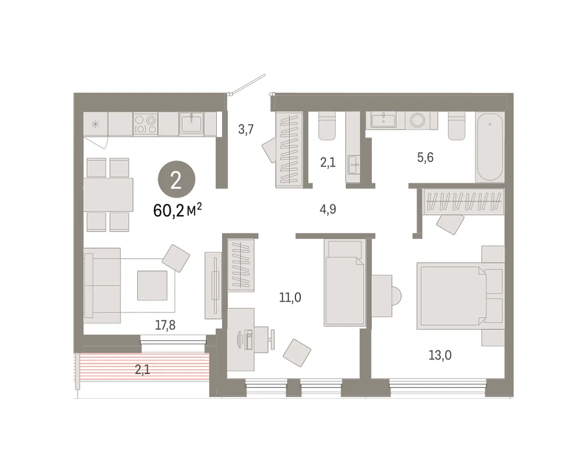 Купить новую двухкомнатную квартиру 60.2 м² на 9/9 этаже в ЖК «Республики 205», г. Тюмень за 10360000 ₽ | Агентство недвижимости «Вплюсе.Топ» — Недвижимость России