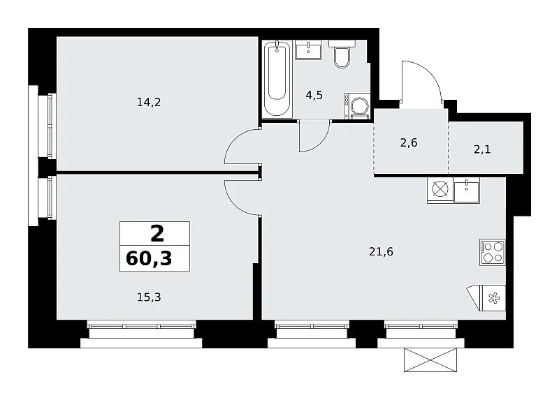 Количество комнат: 2, 60.3 кв.м.