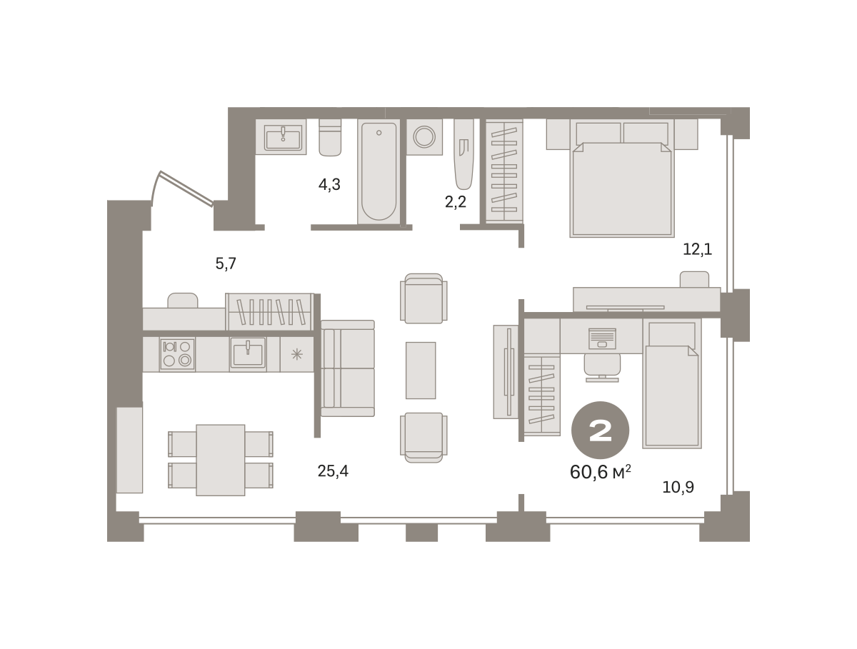 Купить новую двухкомнатную квартиру 60.6 м² на 5/8 этаже в ЖК «Дом «А»», г. Тюмень за 44910000 ₽ | Агентство недвижимости «Вплюсе.Топ» — Агентство недвижимости "Вплюсе.Топ"