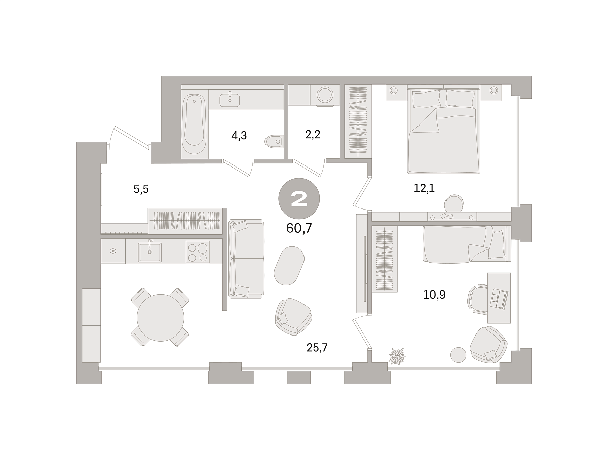 Купить новую двухкомнатную квартиру 60.7 м² на 3/8 этаже в ЖК «Дом «А»», г. Тюмень за 39960000 ₽ | Агентство недвижимости «Вплюсе.Топ» — Недвижимость России