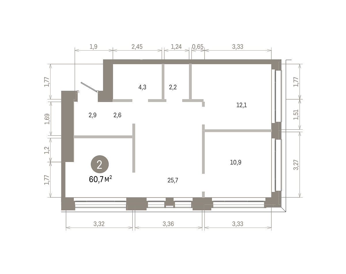 Площадь (общ/жил/кух), м2: 59.5/37.1/5.6