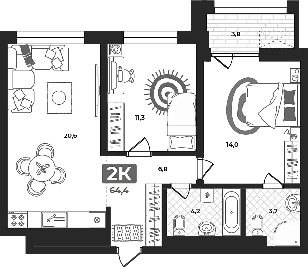 Площадь (общ/жил/кух), м2: 68.5/28.6/—