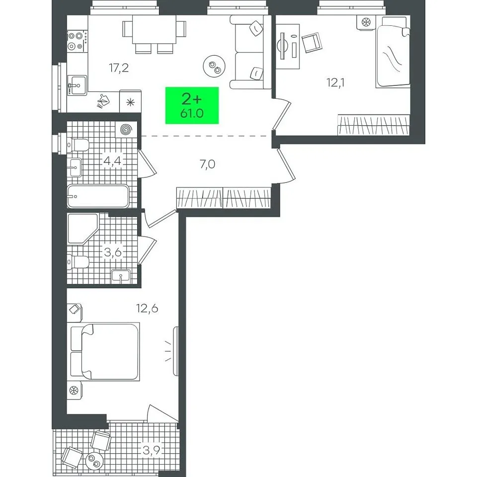 Купить новую двухкомнатную квартиру 61.08 м² на 4/22 этаже в ЖК «Гранд Квартал», г. Тюмень за 9095000 ₽ | Агентство недвижимости «Вплюсе.Топ» — Недвижимость России
