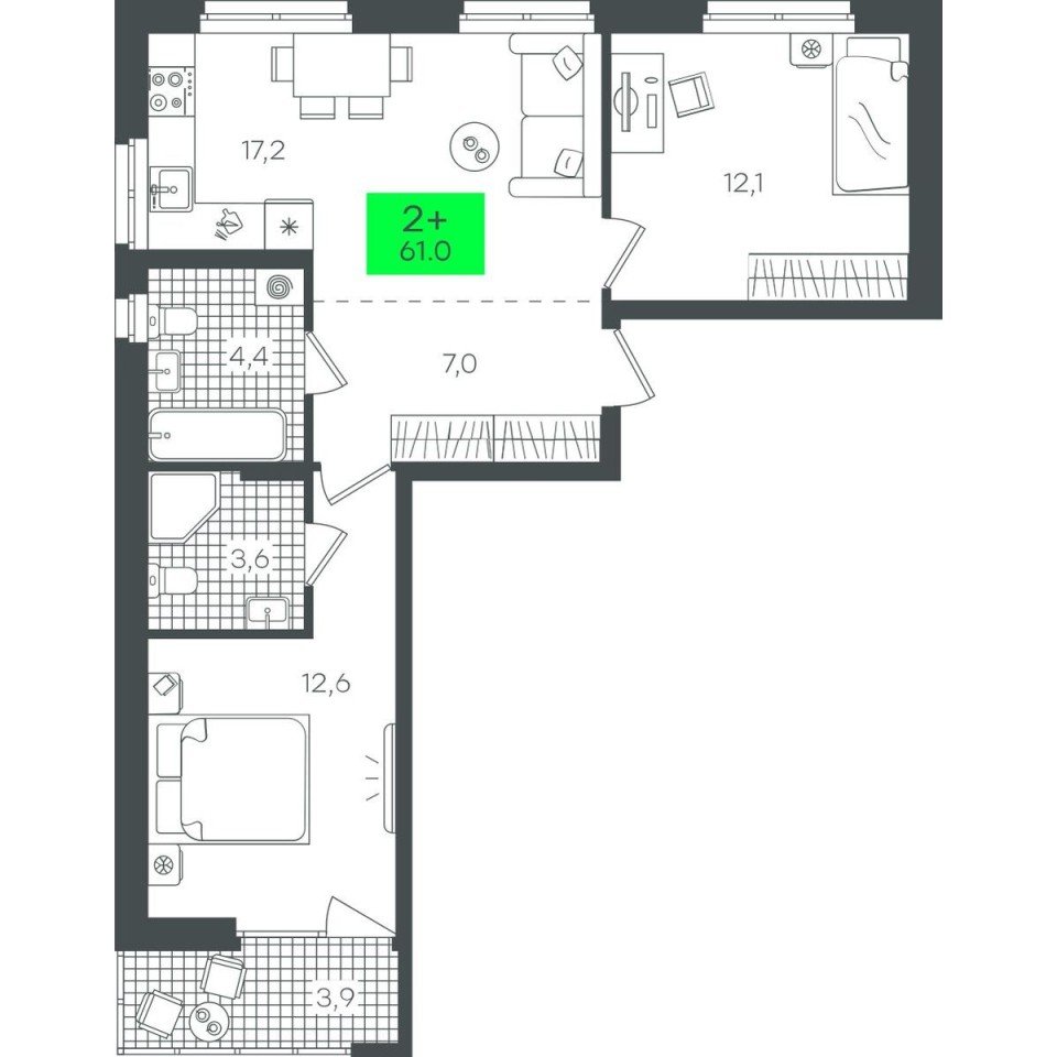 Купить новую двухкомнатную квартиру 61.08 м² на 4/22 этаже в ЖК «Гранд Квартал», г. Тюмень за 8850000 ₽ | Агентство недвижимости «Вплюсе.Топ» — Агентство недвижимости "Вплюсе.Топ"