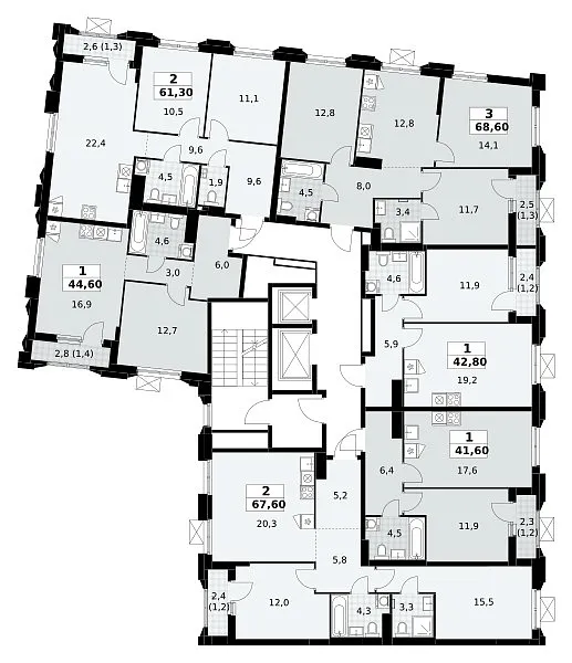 Общая площадь 61.3 м2
