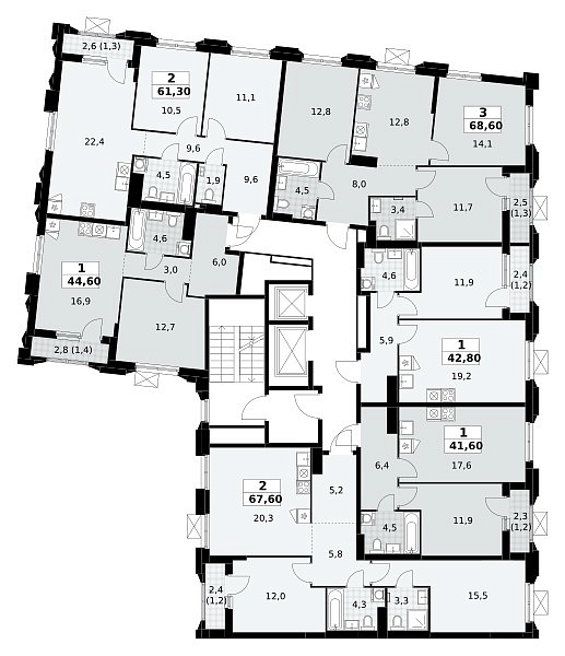 Площадь (общ/жил/кух), м2: 61.7/—/22.4