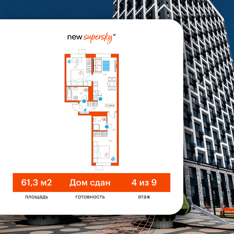 Купить новую двухкомнатную квартиру 61.3 м² на 4/22 этаже в ЖК «SuperSky», г. Тюмень за 8000000 ₽ | Агентство недвижимости «Вплюсе.Топ» — Недвижимость России
