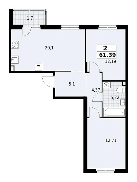 Количество комнат: 2, 61.39 кв.м.