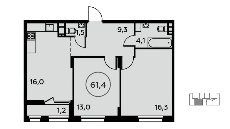 Площадь (общ/жил/кух), м2: 61.1/—/7.6