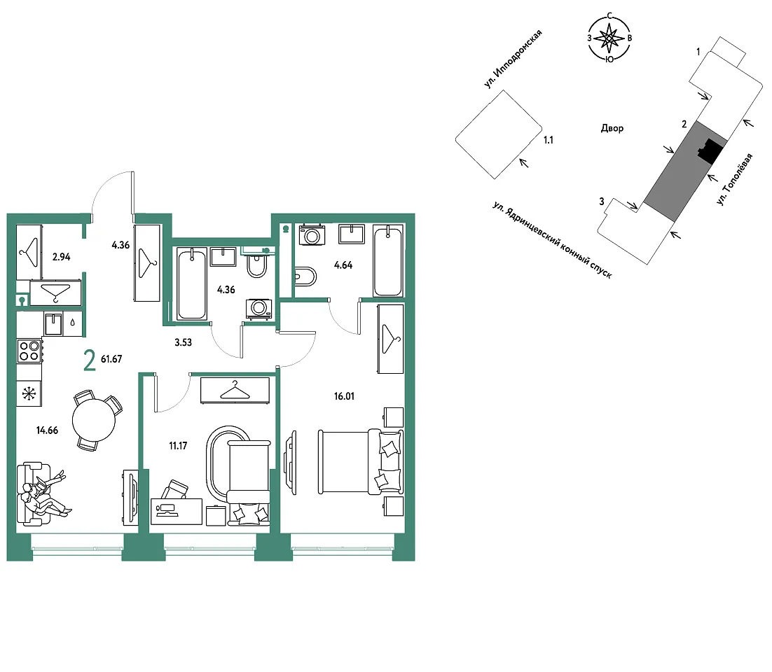 Купить новую двухкомнатную квартиру 61.67 м² на 2/9 этаже в ЖК «Страна.Тополёвая», г. Тюмень за 13423529 ₽ | Агентство недвижимости «Вплюсе.Топ» — Недвижимость России
