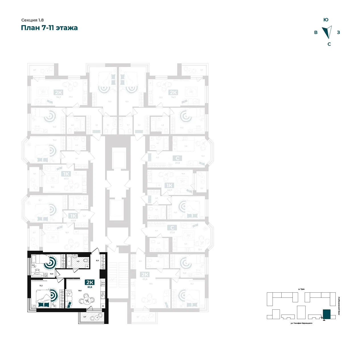Площадь (общ/жил/кух), м2: 61.8/26.1/—