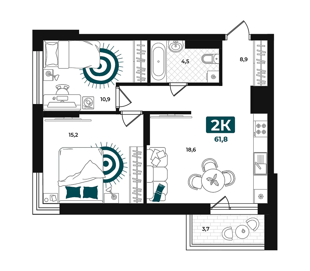 Купить новую двухкомнатную квартиру 61.8 м² на 14/23 этаже в ЖК «Добро», г. Тюмень за 10800000 ₽ | Агентство недвижимости «Вплюсе.Топ» — Недвижимость России