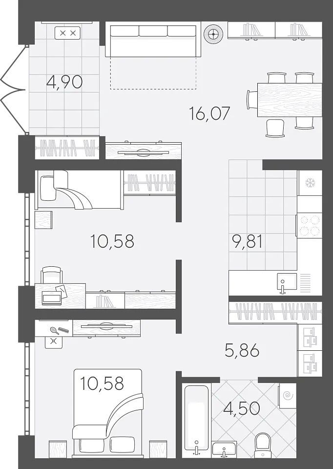Площадь кухни 9.81 м2